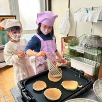 年長さんでホットケーキ作りをしました。 材料を混ぜて… 生地をすくってホットプレートの上へ、ま~るい形に焼いて… ドキドキしながらひっくり返して… 焼けているのかを確認したら…完成!!上手にできました! ことり・ひよこ・ …