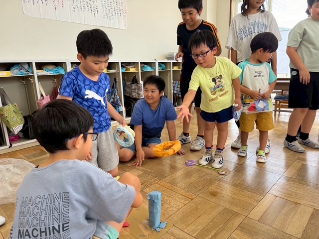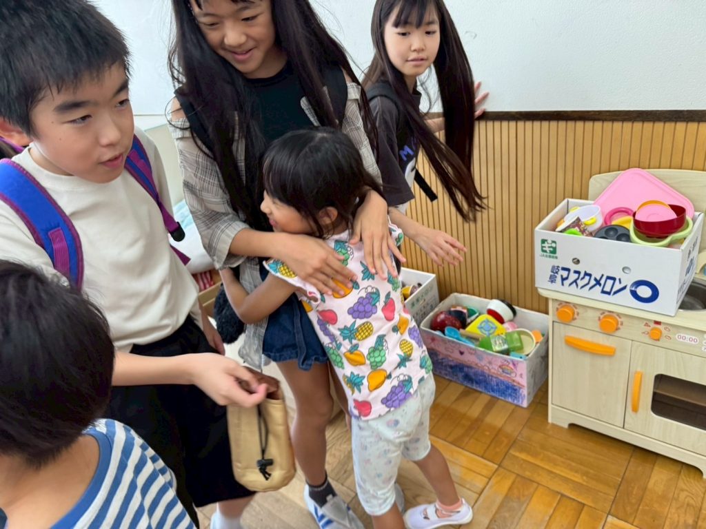 今日は、小学生のお兄さん・お姉さんが幼稚園に遊びに来てくれました。