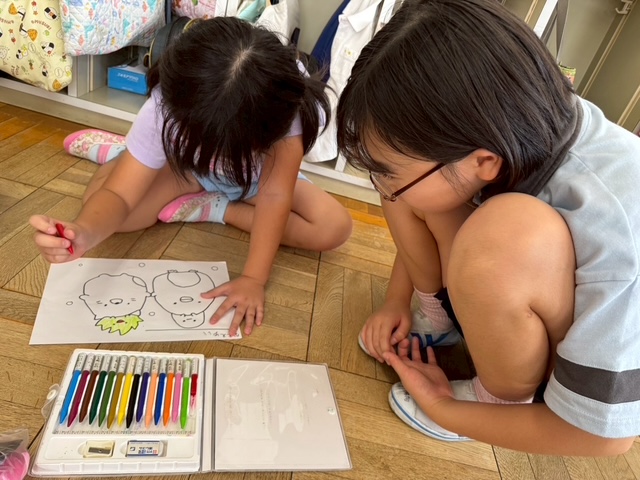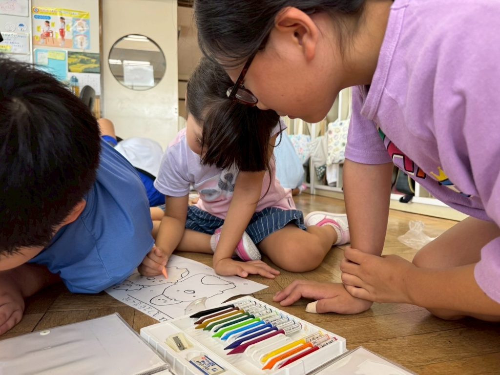 塗り絵もお兄さん・お姉さんが描いてくれた絵を塗りました。