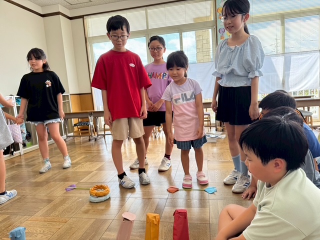 全て手作りのわなげを持ってきてくれました。入らなくても「惜しい!」「上手だよ~!」と 優しい言葉をかけてくれて、ひかりさんも嬉しそうでした。