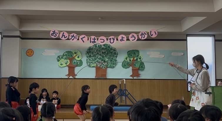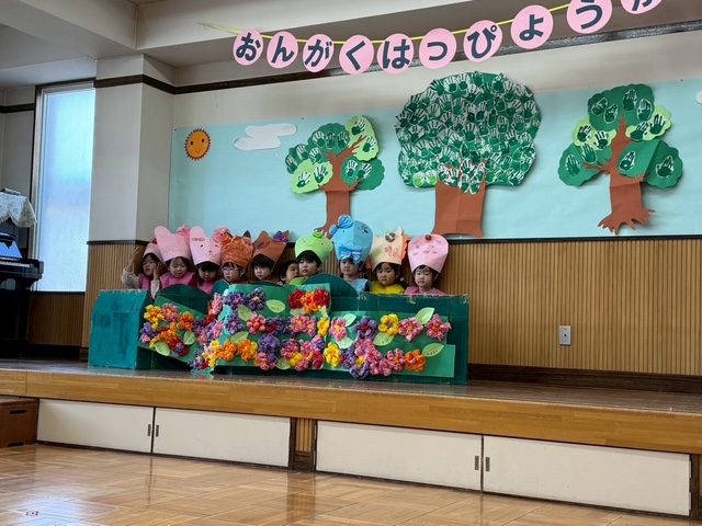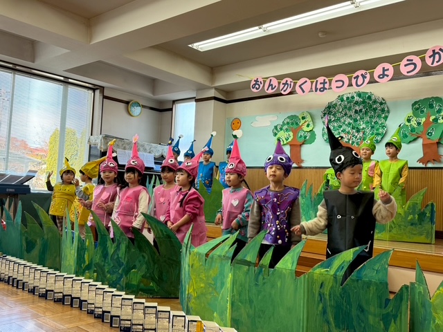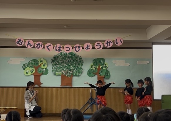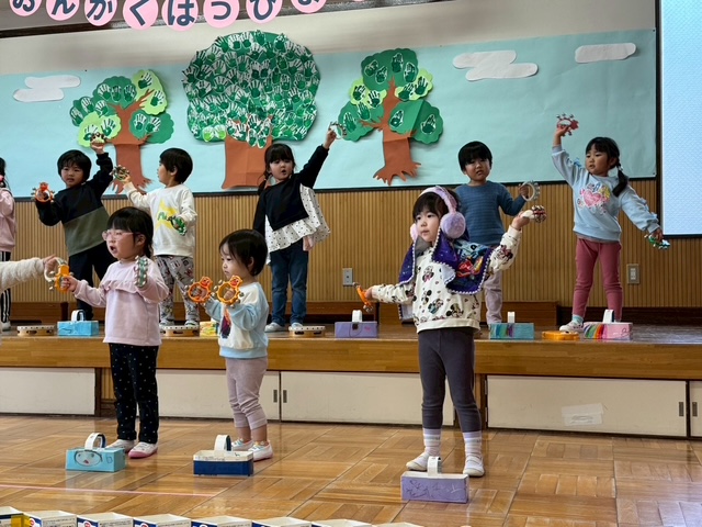 楽器を鳴らしながら歌って踊るかわいらしいステージでした。