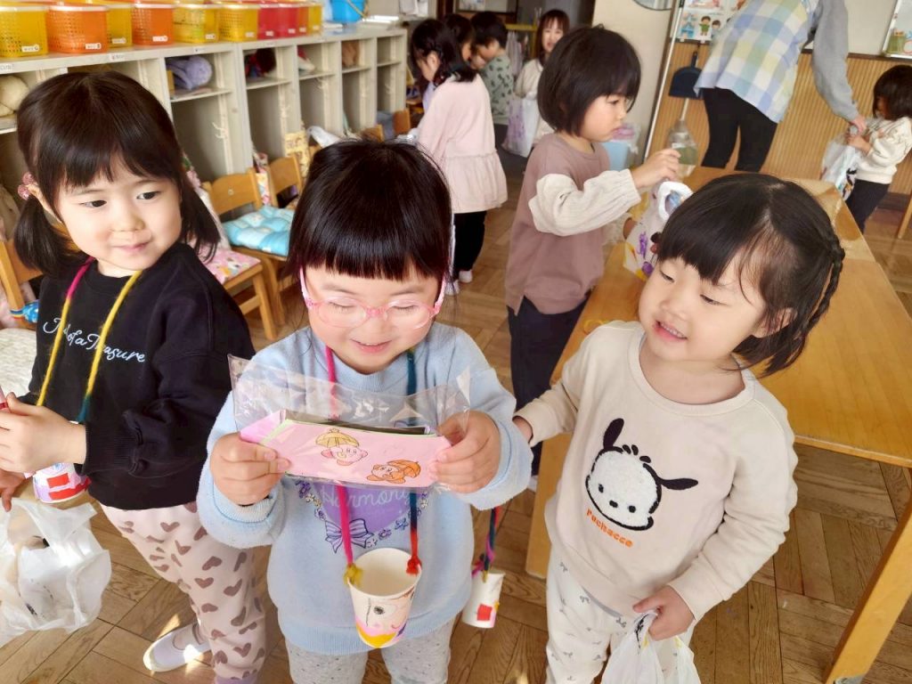 自分で作ったお財布と、お金、手提げ袋を持ってお買い物にしゅっぱーつ!!